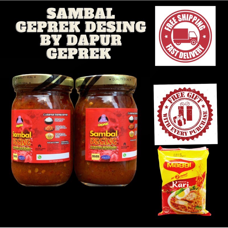 Deskripsi sambal geprek (jar) sambal geprek sambal terbuat dari cabai rawit merah pilihan yang tidak tercampur dengan rawit hijau dengan kombinasi bawang sambal geprek. Terdiri nasi + ayam geprek + sambal + lalapan .